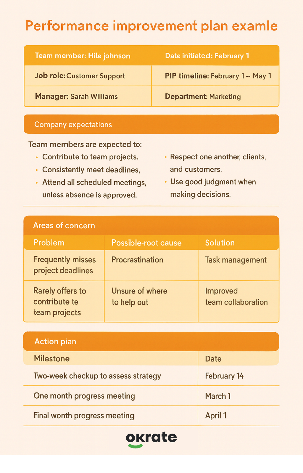 A PIP is a formal document that outlines specific performance concerns, measurable expectations, a timeline for improvement and the support the company will provide. According to Harvard Business Review, PIPs are designed to address genuine performance gaps, whether in job outcomes or behavior, and to clearly define what improved performance looks like, by when, and with whose support